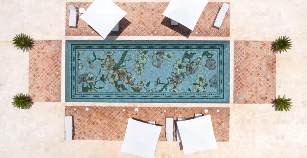 Dostępne w szerokiej gamie kolorów i stylów, zewnętrzne mozaiki szklane umożliwiają indywidualne kreowanie dowolnych przestrzeni. Ich zdolność odbijania światła, zarówno naturalnego, jak i sztucznego, dodaje głębi i jasności, co czyni je idealnym wyborem do wysokiej klasy projektów architektonicznych, tarasów, fasad, spa oraz innych obszarów zewnętrznych.